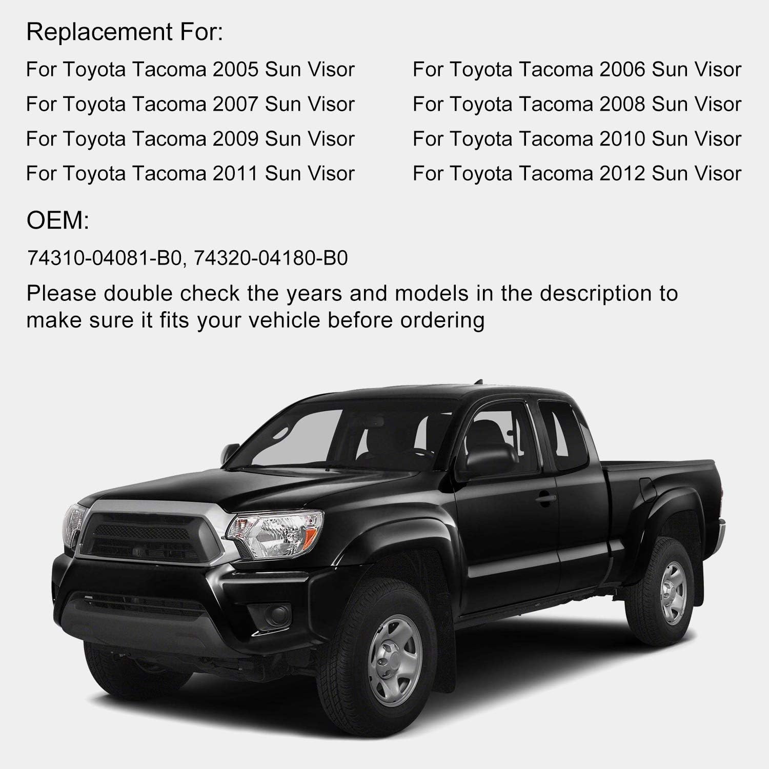 En eBay encuentras fabulosas ofertas en Sun Visors for 2004 Toyota Tundra. 07-13 TOYOTA TUNDRA SR5 driver passenger sun visor sunvisor set tan OEM. 2005-06 Toyota Tundra RH Passenger Cloth Interior Sun Visor GRAY-FL11.